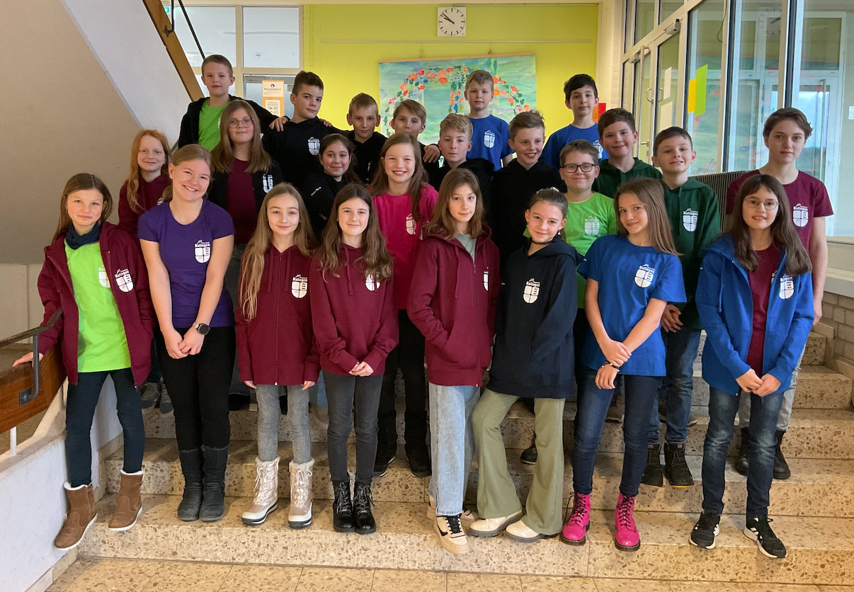 Wir freuen uns, die Schulkleidung mit unserem Schullogo vorzustellen: Diese ist neben dem Namen unserer Schule auch noch mit dem Begriff „Meine Schule“ versehen, um die Identifikation mit der Realschule Balingen nach außen hin sichtbar zu machen. Des Weiteren sind drei Löwen darauf abgebildet, die an das Landeswappen Baden-Württemberg angelehnt sind. Es ist aber so, dass im Originalwappen alle drei Löwen nach links gerichtet sind bzw. in die gleiche Richtung blicken. Auf unserem Schullogo ist dem nicht so: Zwei schauen nach links und einer nach rechts. Denn bei uns darf jeder so sein, wie er ist. Unser Logo soll zeigen, dass unser Schülerinnen und Schüler selbständige, aber auch kritisch hinterfragende junge Menschen sind.